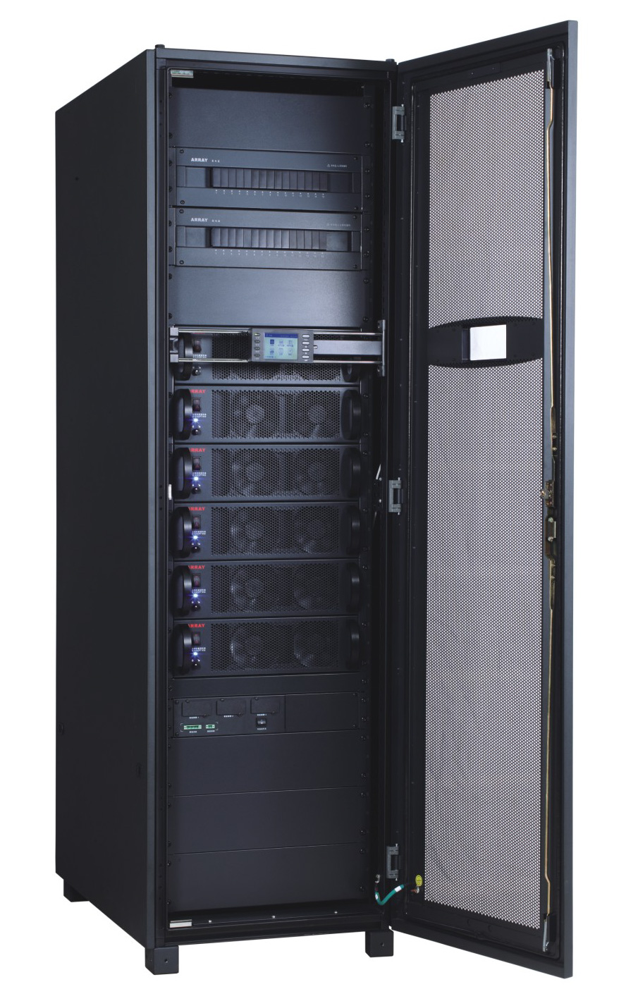 ARRAY 3A3個UPS模塊體積爲(440.700. 131) mm (3U)、一個标準2米高的UPS機櫃最多可以安裝10個UPS模塊、總容量達(dá)到150KVA而且配電(diàn)盤也台在其中再配上UPS機櫃般大小的電(diàn)池櫃、便可組成完整的UPS供電(diàn)系統由 於(yú)UPS4/L櫃和電池櫃都採用标準機櫃,與大多數機房的負載設備機櫃緻、因此可以與負載並(bìng)排放置而無需專用的UPS配 電(diàn)房,不僅美觀(guān)而且能爲客戶最大限度地節省安裝空間。
