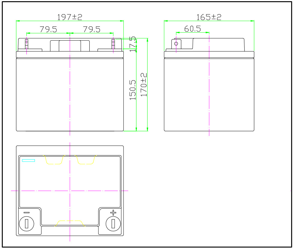 産品特點:· 電池内部無遊離酸,可倒放90°安全使用· 合适的電解液比重,充分保證壽命 外形尺寸: