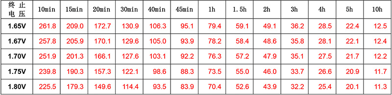 放電電流及放電終止電壓: