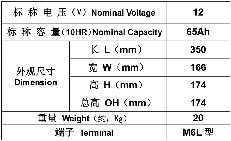 産品特點:· 電池内部無遊離酸,可倒放90°安全使用· 合适的電解液比重,充分保證壽命 外形尺寸:
