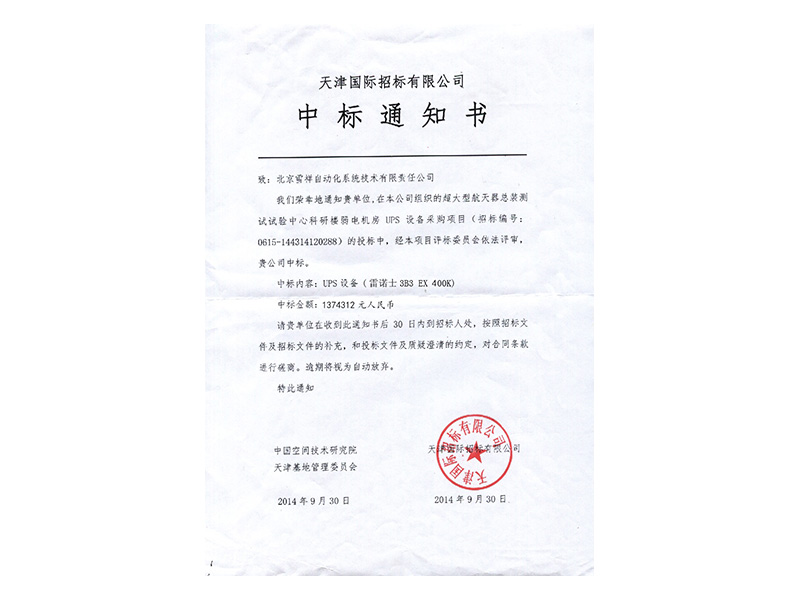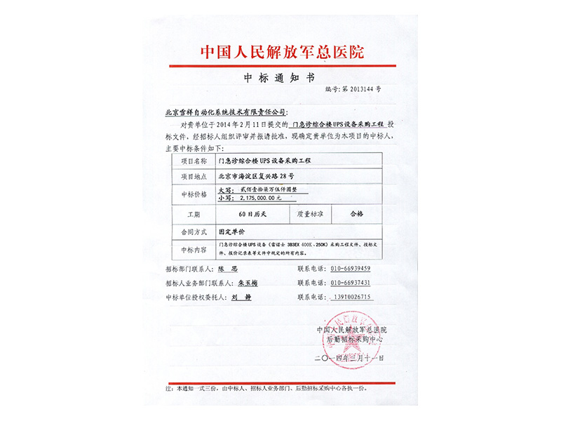 解放軍(jūn)總醫院301醫院中标通知書(shū)